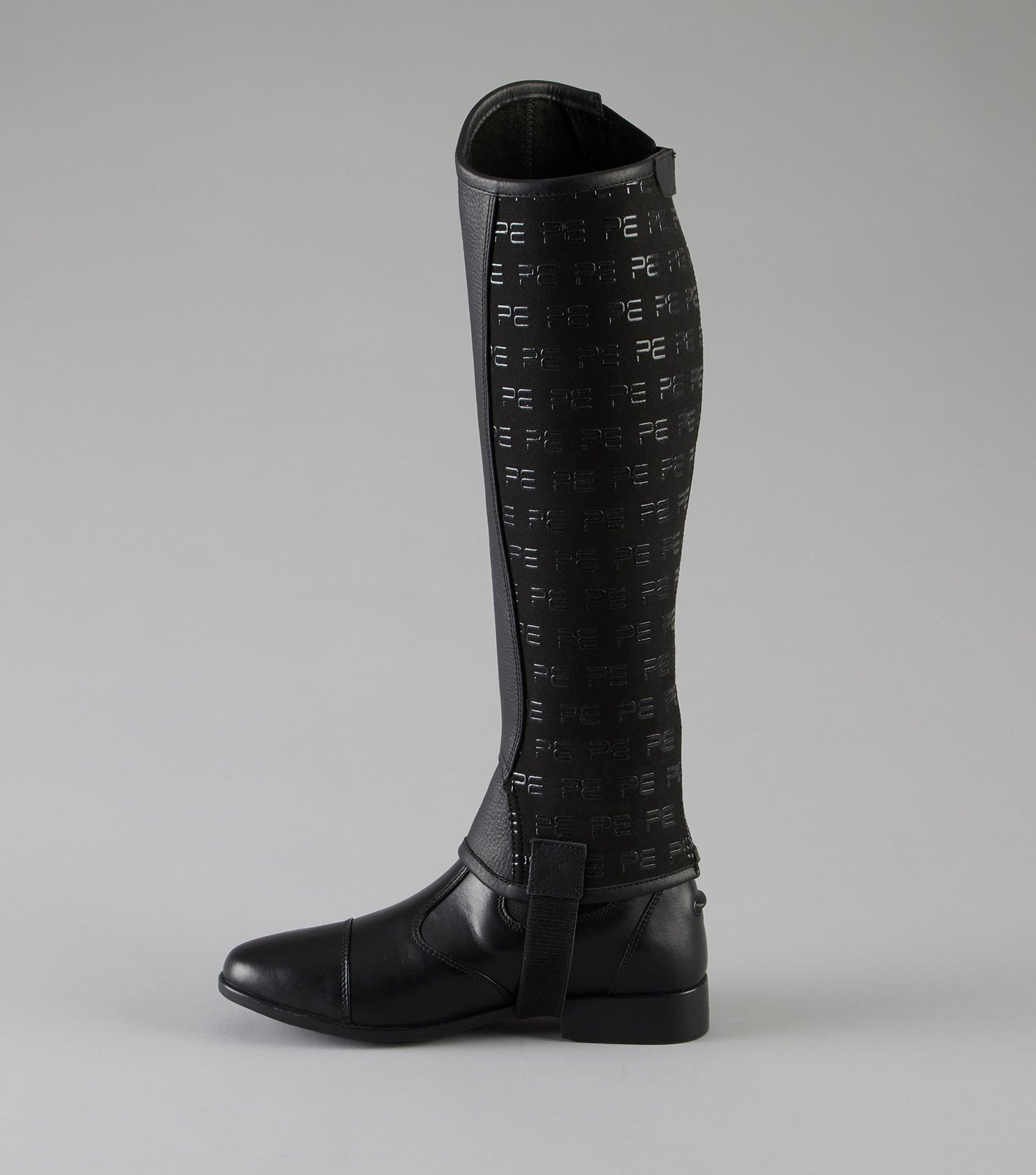 Innovative technology has been incorporated into the half chaps to improve stability in the saddle and a close contact feel by providing an inner soft touch panel with a branded silicone gel print.