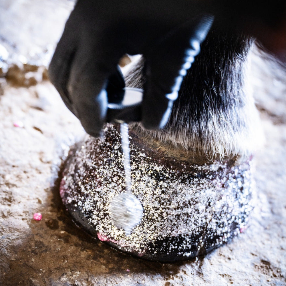 Add sparkle to every step with this vibrant hoof polish! Infused with extra-concentrated glitter, it not only makes hooves shine but also helps seal small cracks and retain natural moisture. Easy to apply with the built-in dauber, long-lasting, and available in a range of dazzling colours.