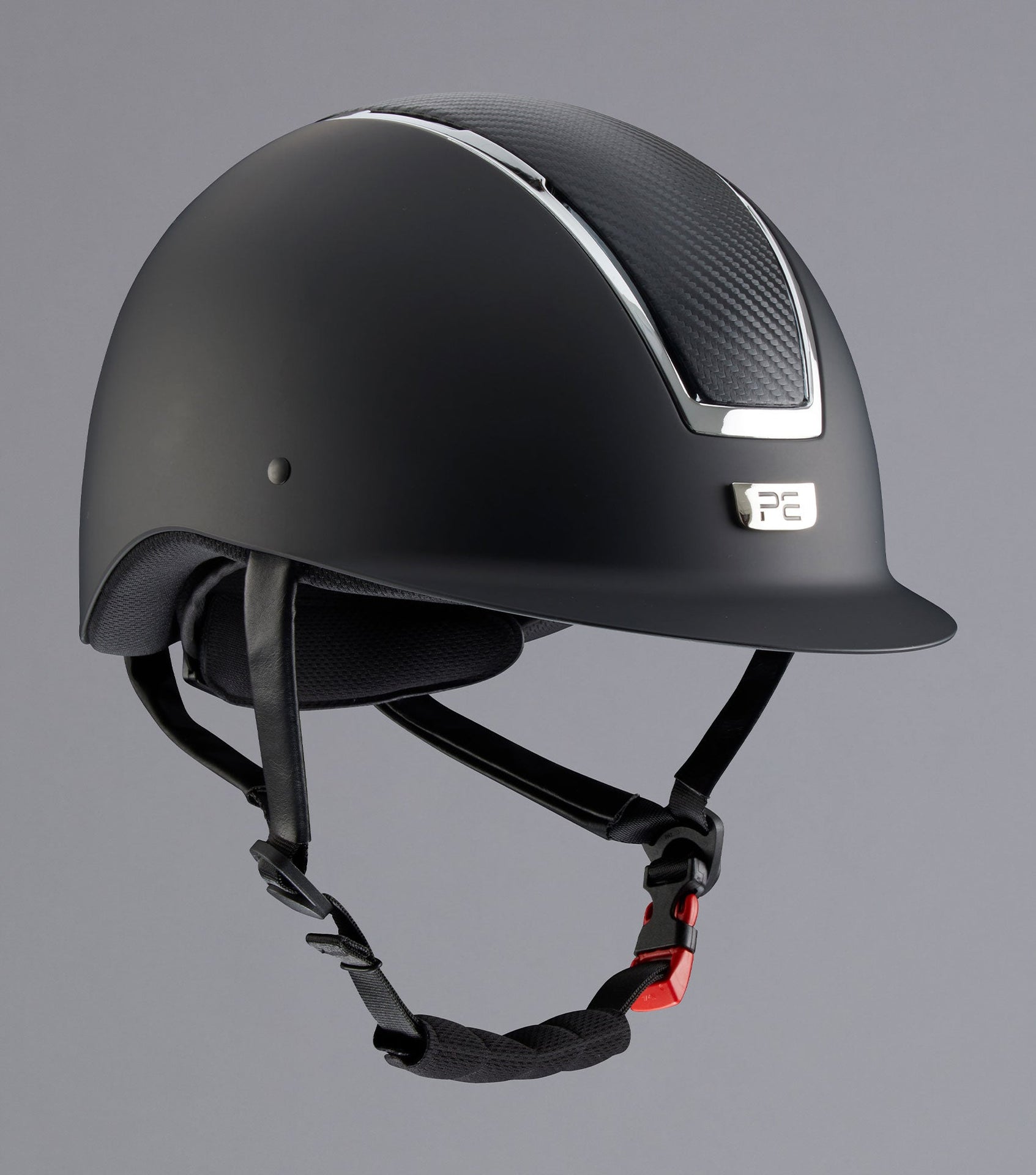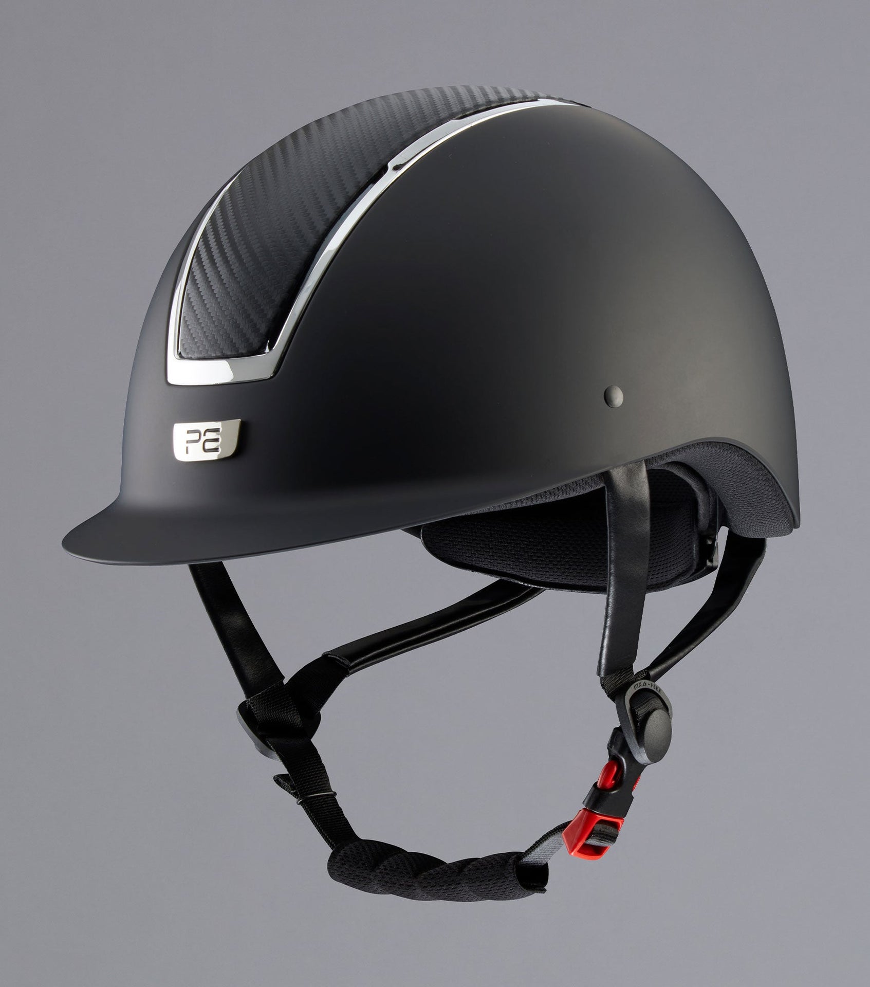 Engineered from a combination of eco-leather and webbing, allowing personalised structure and stability; the four-point fully adjustable harness is finished with a quick release functional buckle for added safety and ease of use along with a discretely padded chin guard.