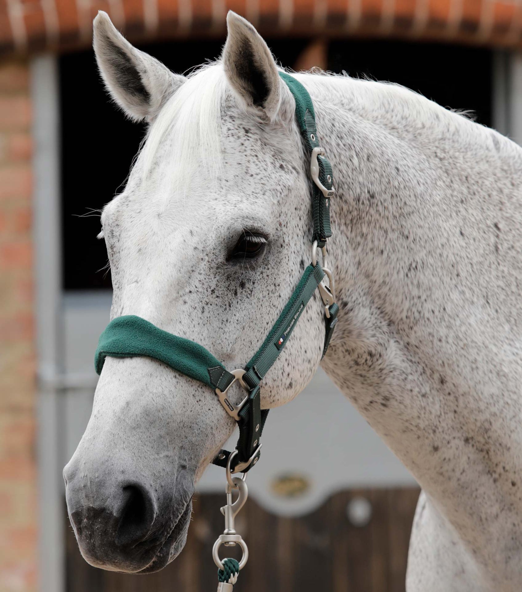 Made from strong polypropylene webbing and lined with fleece over the poll, cheek and nose areas. Featuring various fastening solutions for quick adjustment and removal.