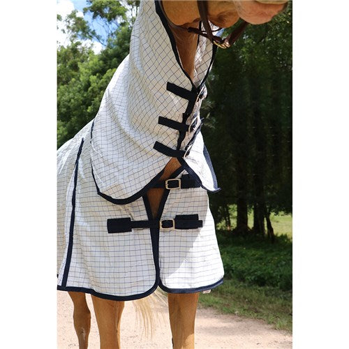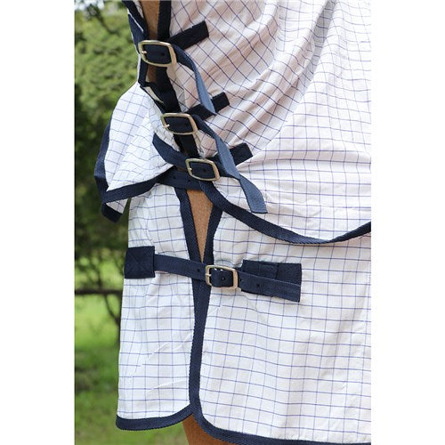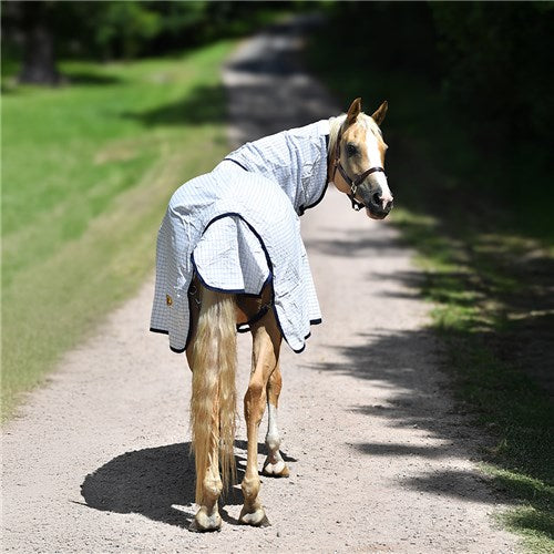Designed for everyday use, it offers a lightweight, breathable solution that doesn't compromise on protection. The rug's soft cotton-like feel ensures your horse's comfort, while strong nylon webbing and stainless-steel fittings provide a secure fit.