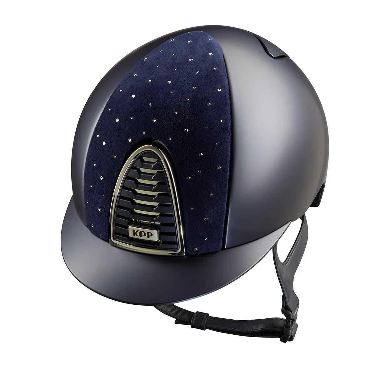 Fine suede embellished with Swarovski® crystals that elegantly capture the light. With its essential design, Goccia is a timeless classic, perfect for those who love elegance in its purest form. Designed and manufactured 100% in Italy, the Cromo 2.0 riding helmet by KEP Italia combines innovation, safety, and style. Elegant and durable design. The outer shell is made of in-molded polycarbonate, ensuring comfort and maximum safety in the saddle. Limitless customization. Thanks to the interlocking system, you can independently replace the front/rear inserts and visor, even after purchase.
