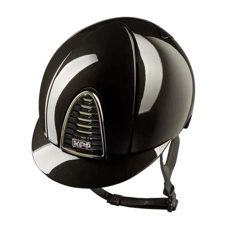Discover the refined elegance of the KEP CROMO 2.0 helmet with a Shine finish, embellished with a mirrored frame and undergrill, and the prestigious KEP logo in Swarovski crystals. A 100% Made in Italy equestrian masterpiece that combines contemporary style and discreet luxury. Exclusive and Sophisticated Design The CROMO 2.0 model represents the evolution of the famous KEP Cromo helmet.