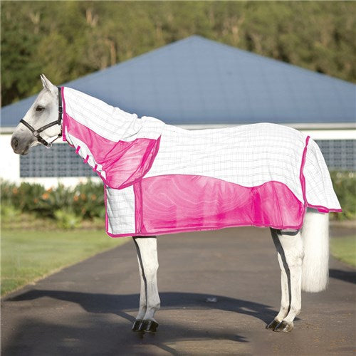 Its unique hybrid design fuses the cooling benefits of mesh alongside special ripstop material which is tactically woven to outlast daily wear and tear. Proven to be a great, sturdy solution for the active horse who requires airflow and protection from the sun and insects.