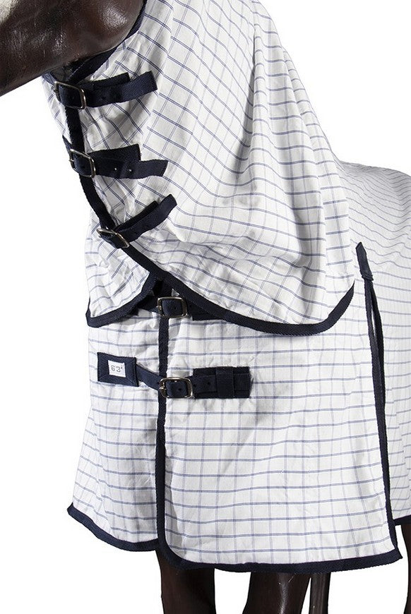 Infusing 70% quality cotton with 30% polyester, this versatile summer rug offers the comfort and breathability of cotton alongside the durability and harsh weather resistance of polyester. The quick release fittings make it easy to put on and off.