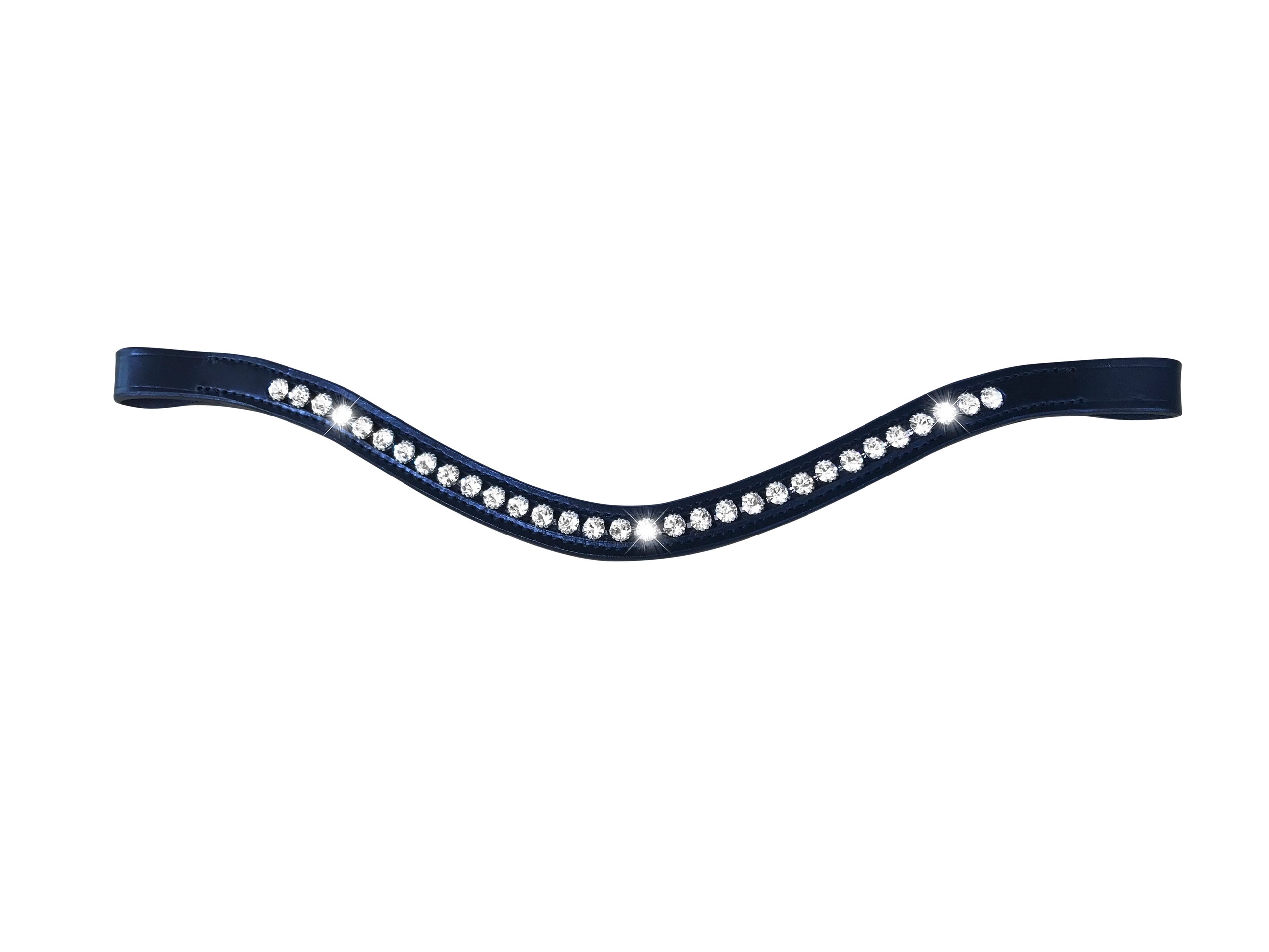 Curved bling Swarovski browband in black with clear crystals. This browband adds refined bling to any bridle. Flexible fit for maximum comfort andΒ handcrafted from Austrian stellux crystals.