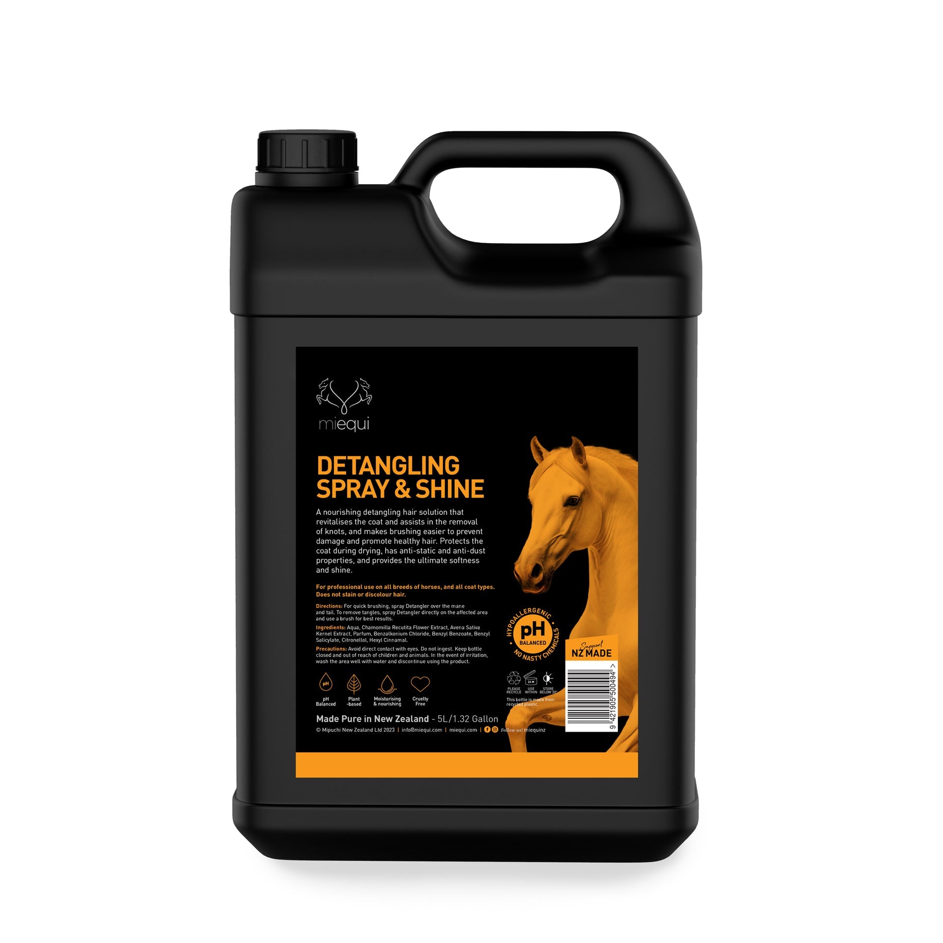 MIEQUI DETANGLING SPRAY & SHINE is a nourishing detangling hair solution that revitalises the coat and assists in the removal of knots, and makes brushing easier to prevent damage and promote healthy hair. Protects the coat during drying, has anti-static and anti-dust properties, and provides the ultimate softness and shine.