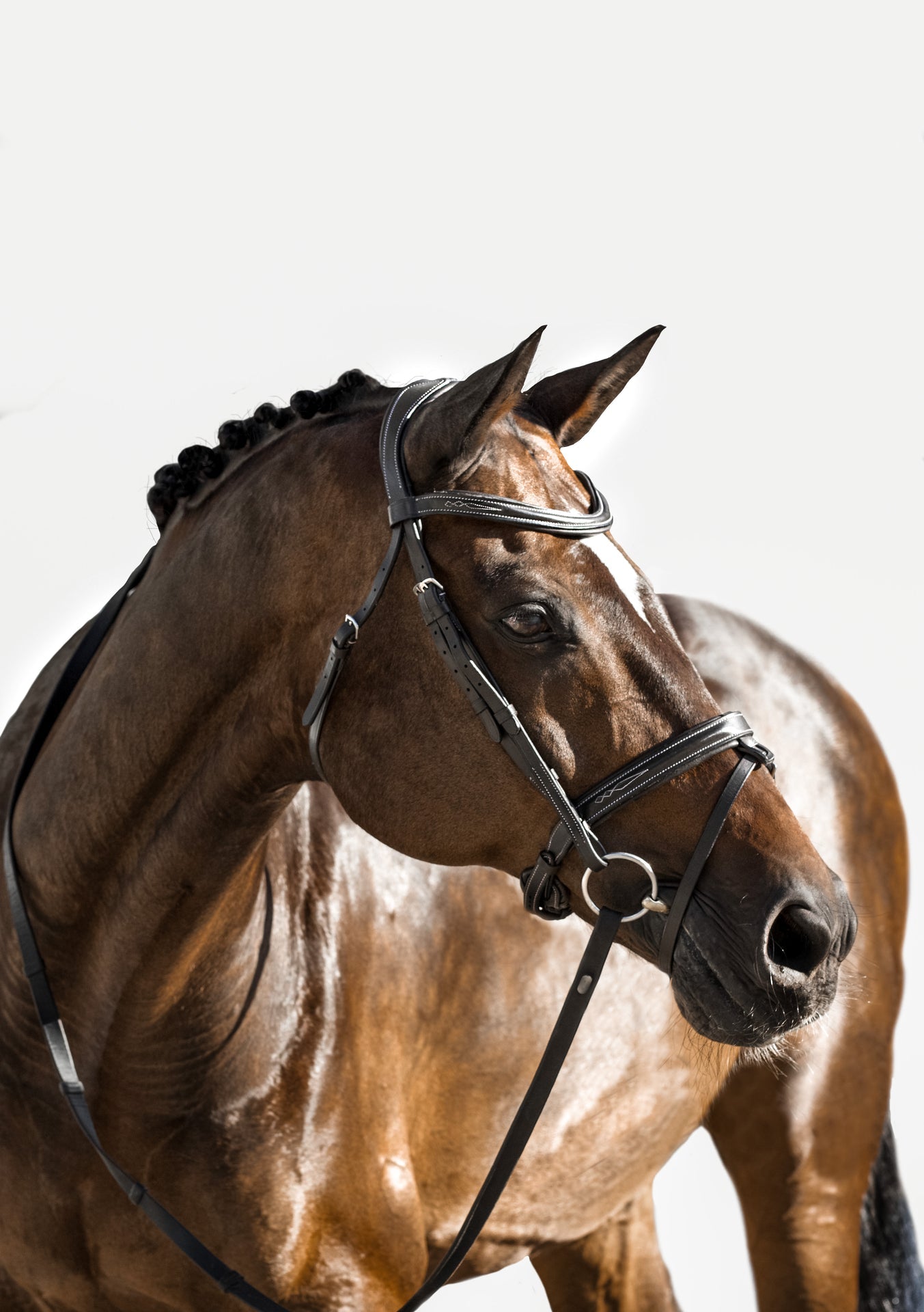 - Elegant, deep drop raised leather browband