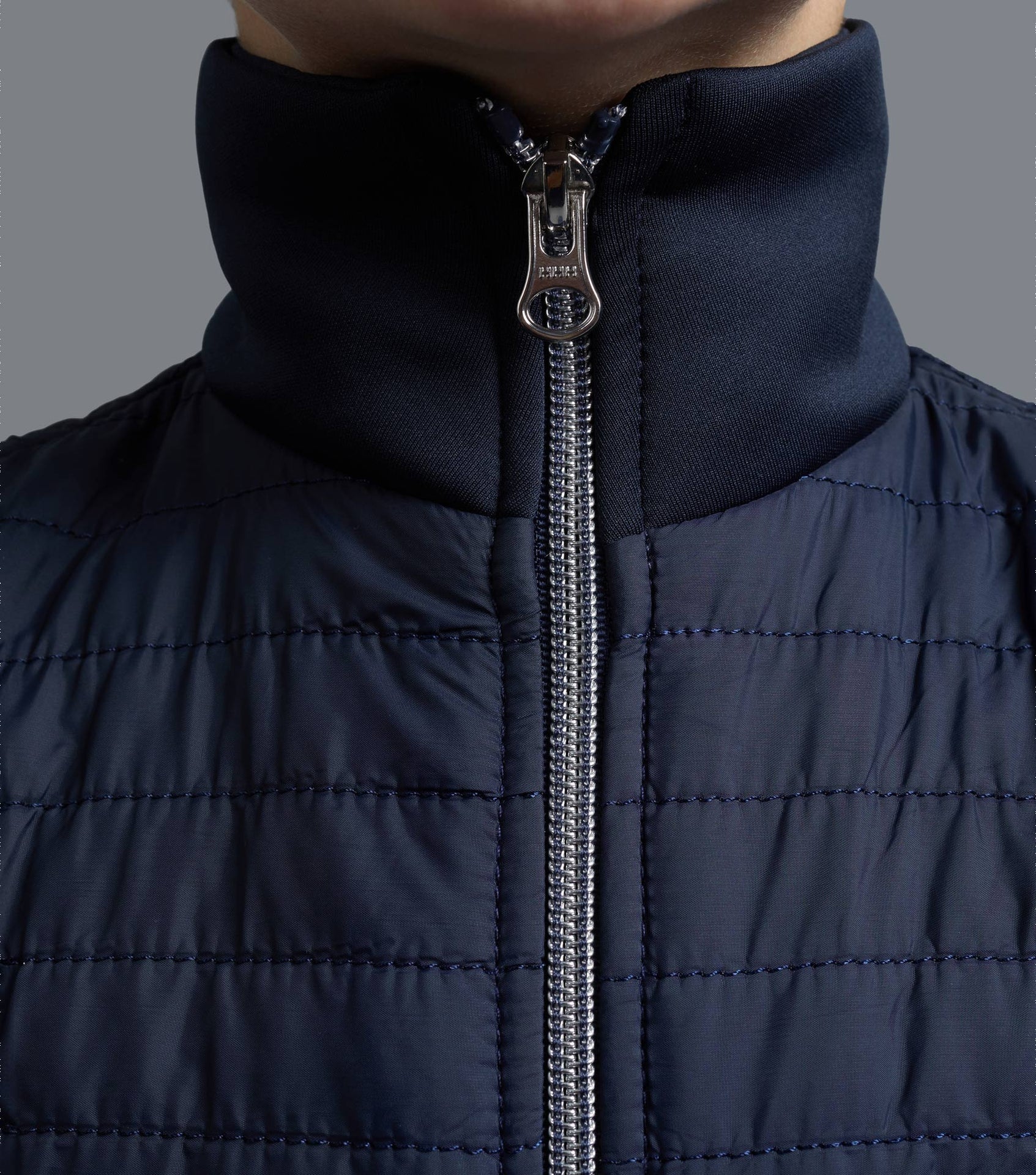 The main body of the Mini Elena Girl's Hybrid Riding Jacket has been engineered from a durable yet lightweight quilted material to create a built-in riding gilet appearance to this jacket.
