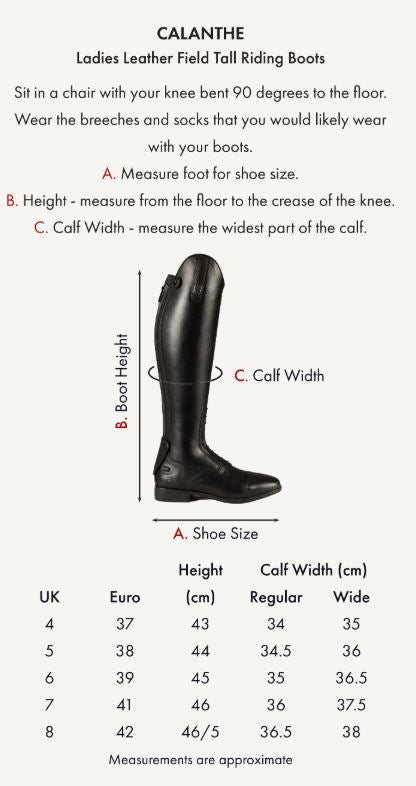 Keeping with tradition, the Calanthe boots are knee-high in design with an elasticated lace field around the ankle to add further flexibility and freedom of movement. The textured leather which coats the inside of the calf aids grip and security of the lower leg, enhancing communication of the leg aids and creating comfortable soft-touch communication.