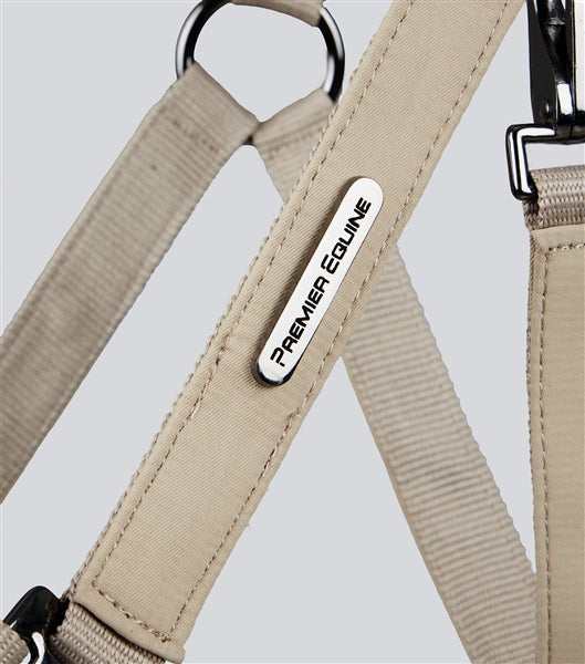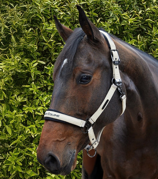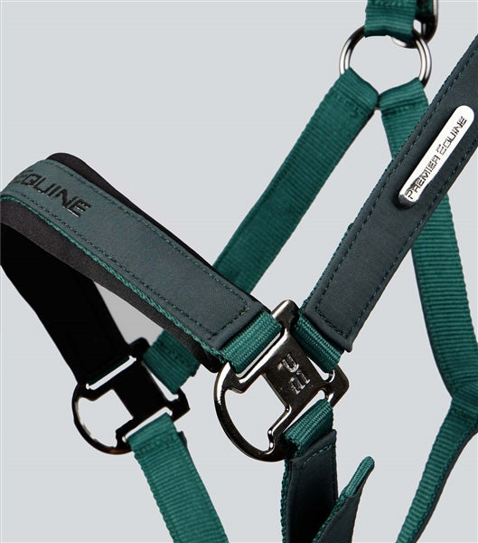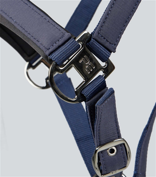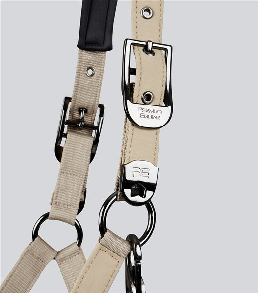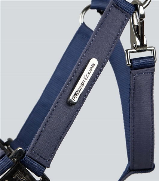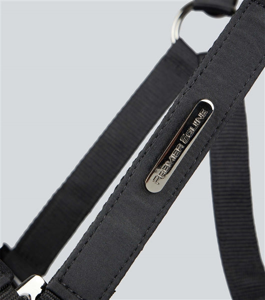 Crafted from a 100% polyester with sturdy metal fittings, this head collar offers a high-quality finish and a refined look, complete with a polished metal PE branded badge.Β Β