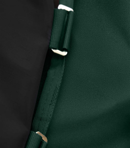 Within the composition of this rug, a 100g thermo-bonded fill offers additional temperature retention for when your horse requires further chill protection. Reflective strips at the front and the rear of the rug increase visibility in low-light conditions. The strategically placed chest clip closures, surcingle bars, and hardware are expertly crafted from high-quality stainless steel for long-lasting functionality.