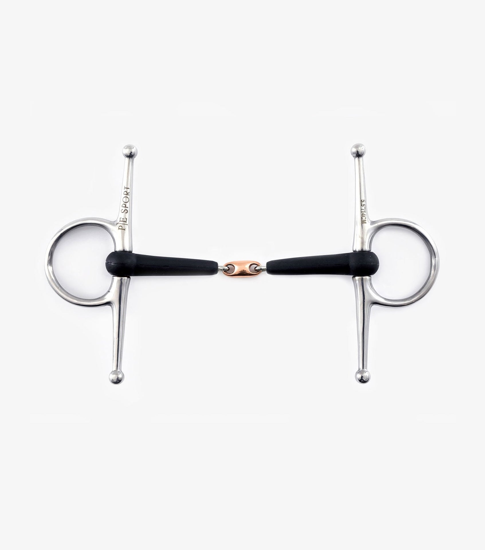 The double jointed, durable rubber mouth piece with copper lozenge offers a higher level of comfort in the horse's mouth. Copper lozenges help to distribute pressure over both the tongue and bars of the mouth, encouraging mouthing and contact. It also helps to prevent pinching of the lips and around the bars of the mouth whilst reducing the nutcracker action of a single jointed bit. Ideal for horses that need a touch more braking power but are perhaps sensitive in the mouth.