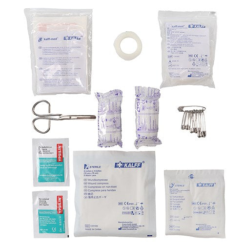 The kit includes a comprehensive selection of first aid supplies, ensuring you have everything needed for effective treatment. It is designed for convenience and portability, allowing for easy access to essential items when time is critical.