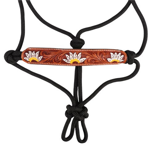 Discover the elegance and durability of the Fort Worth Rope Halter with a Leather Nose in Marigold design. This halter combines practicality with style, featuring a beautifully tooled leather noseband that adds a unique flair to your horse's tack. Designed to fit all sizes, it is a versatile and essential addition to any equestrian collection. Crafted by skilled Fort Worth artisans using traditional techniques, this halter promises both aesthetic appeal and lasting quality. Enhance your horse's look while ensuring comfort and durability.Β