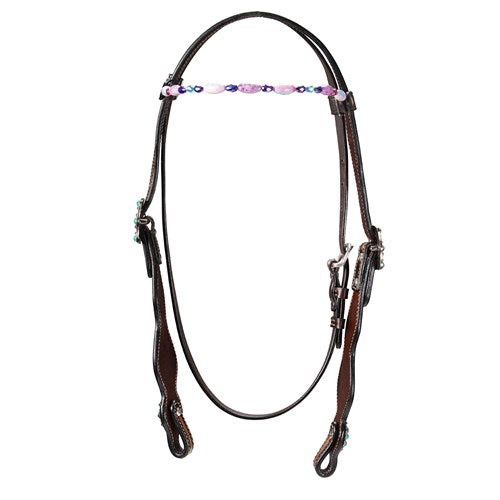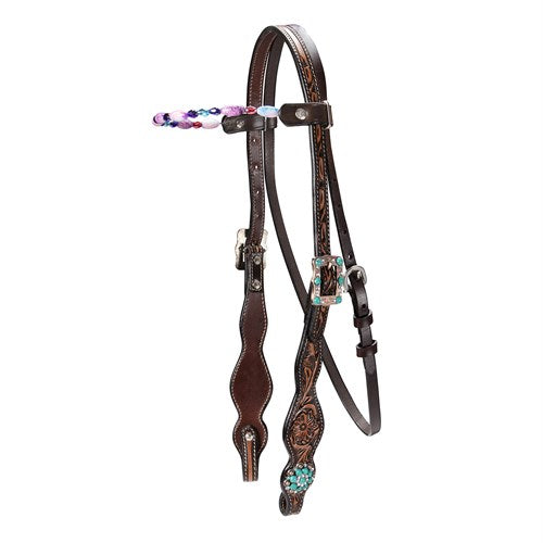 Fort Worth Stones Western Headstall features a colourful stone browband with hand carved detailing on premium American leather.