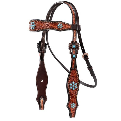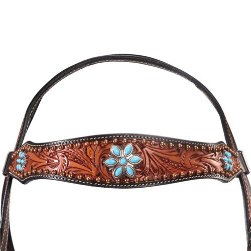 STC Fort Worth Wildflower Headstall - Turquoise & Copper