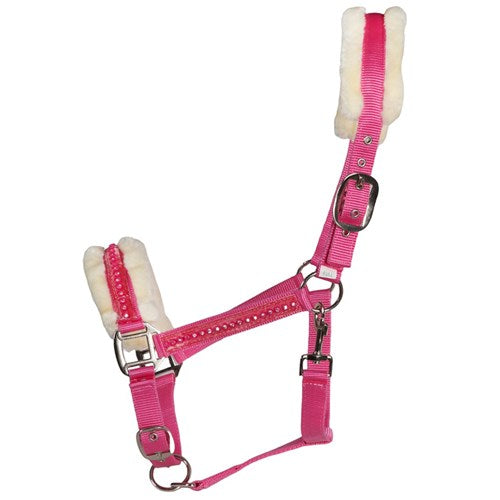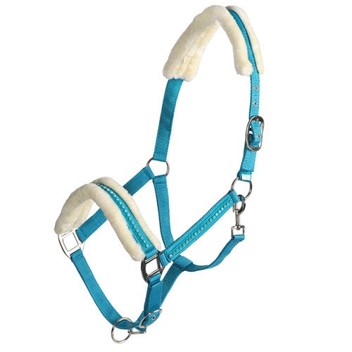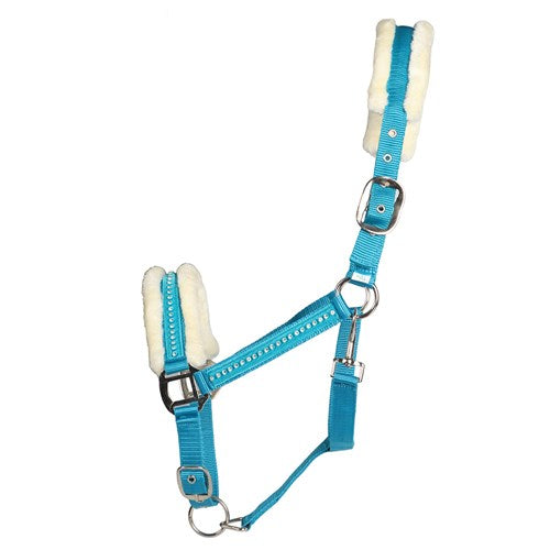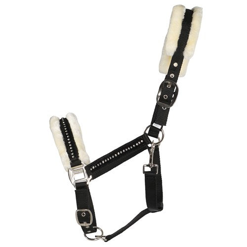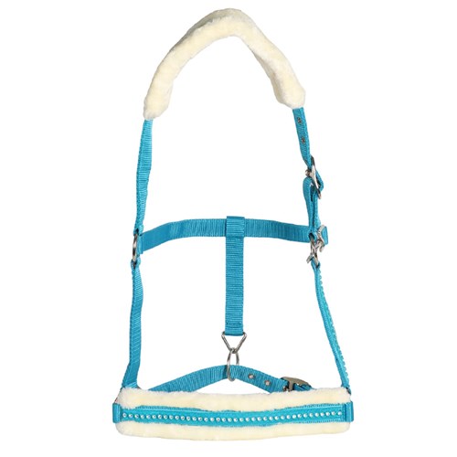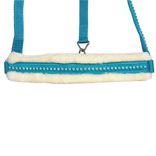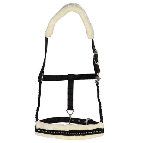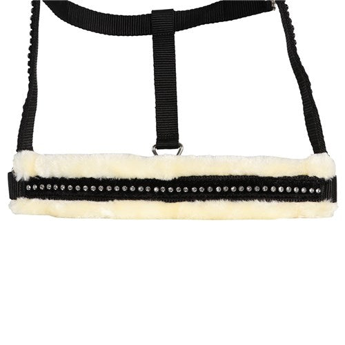 Attractive, flashy design with soft, luxurious synthetic fleece lining on the nose and headband and feature crystals on the noseband and cheek pieces.