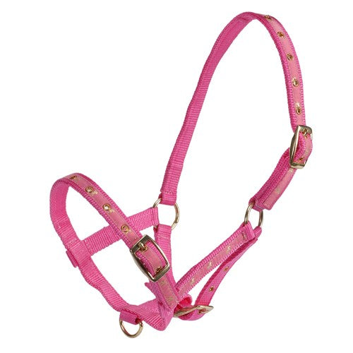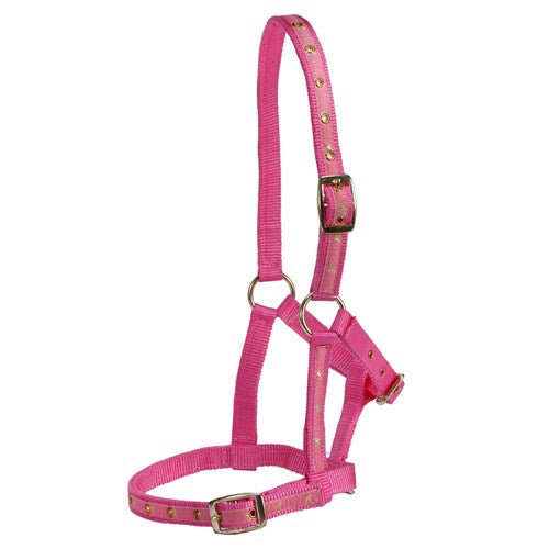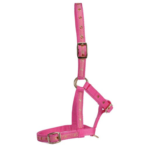 The Rancher Deluxe Foal Halter is a premium equestrian accessory designed for young horses. Available in pink and blue, this beautifully crafted halter features a distinctive contrasting horse motif and durable brass fittings, ensuring both style and functionality for foal training and handling.