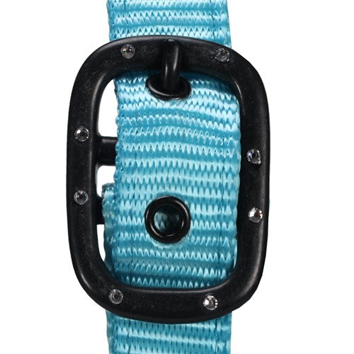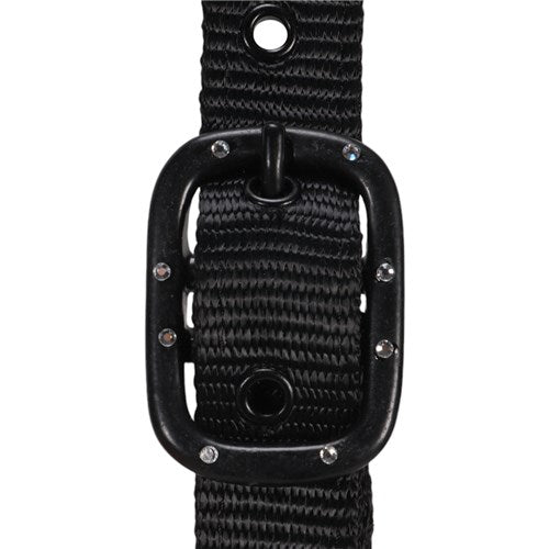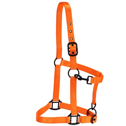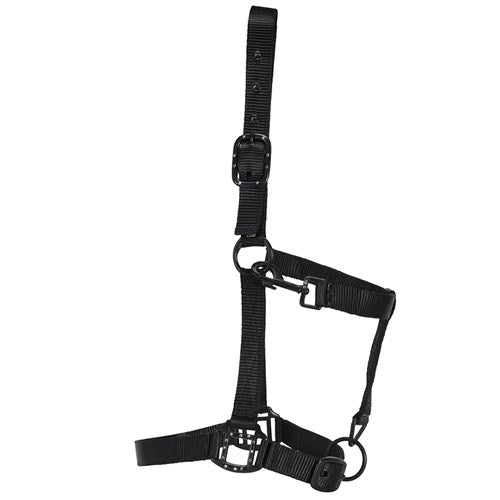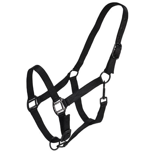 Strong 25mm webbing with striking black hardware and snap fastening at jowl for ease of fitting.