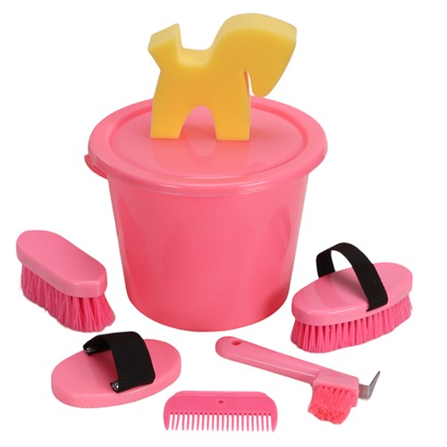 Discover the Showmaster Grooming Kit Bucket, the ideal gift for horse and pony enthusiasts! This compact grooming set is available in vibrant blue or pink, making it a perfect starter kit for shows or pony club activities. It includes essential grooming tools neatly stored in a handy bucket with a lid, ensuring convenience and organisation.Β