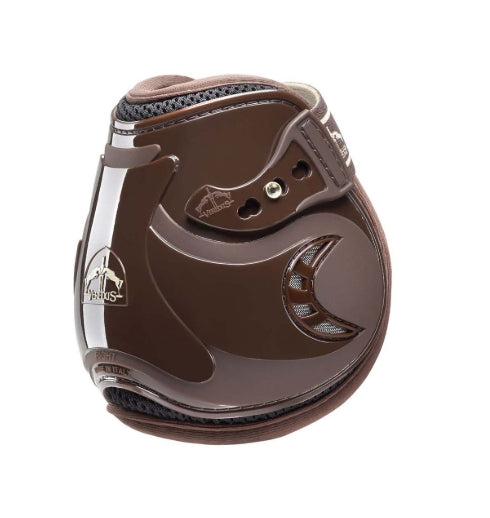 Fetlock boot with double anatomic shockproof polyurethane shell designed to obtain the best performance from the rear legs, complies with the latest FEI rules.