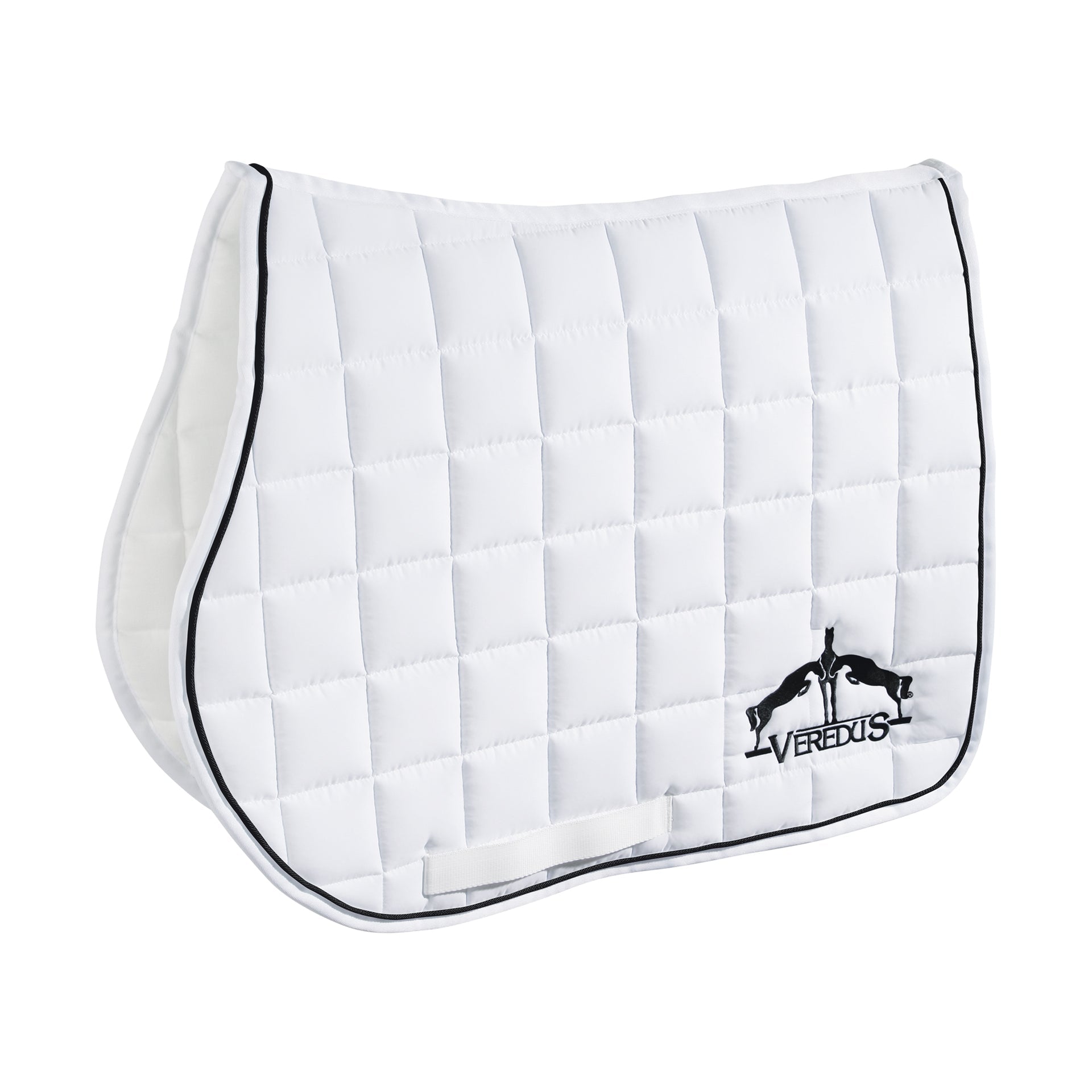 Jumping saddlecloth made from cotton and polyester with moisture wicking padding. Natural coloured Microfiber lining that is durable with a reinforced trim around the edge. The breathable padding guarantees better comfort, offers a shock-absorbing effect and provides protective cushioning against the weight of the saddle.