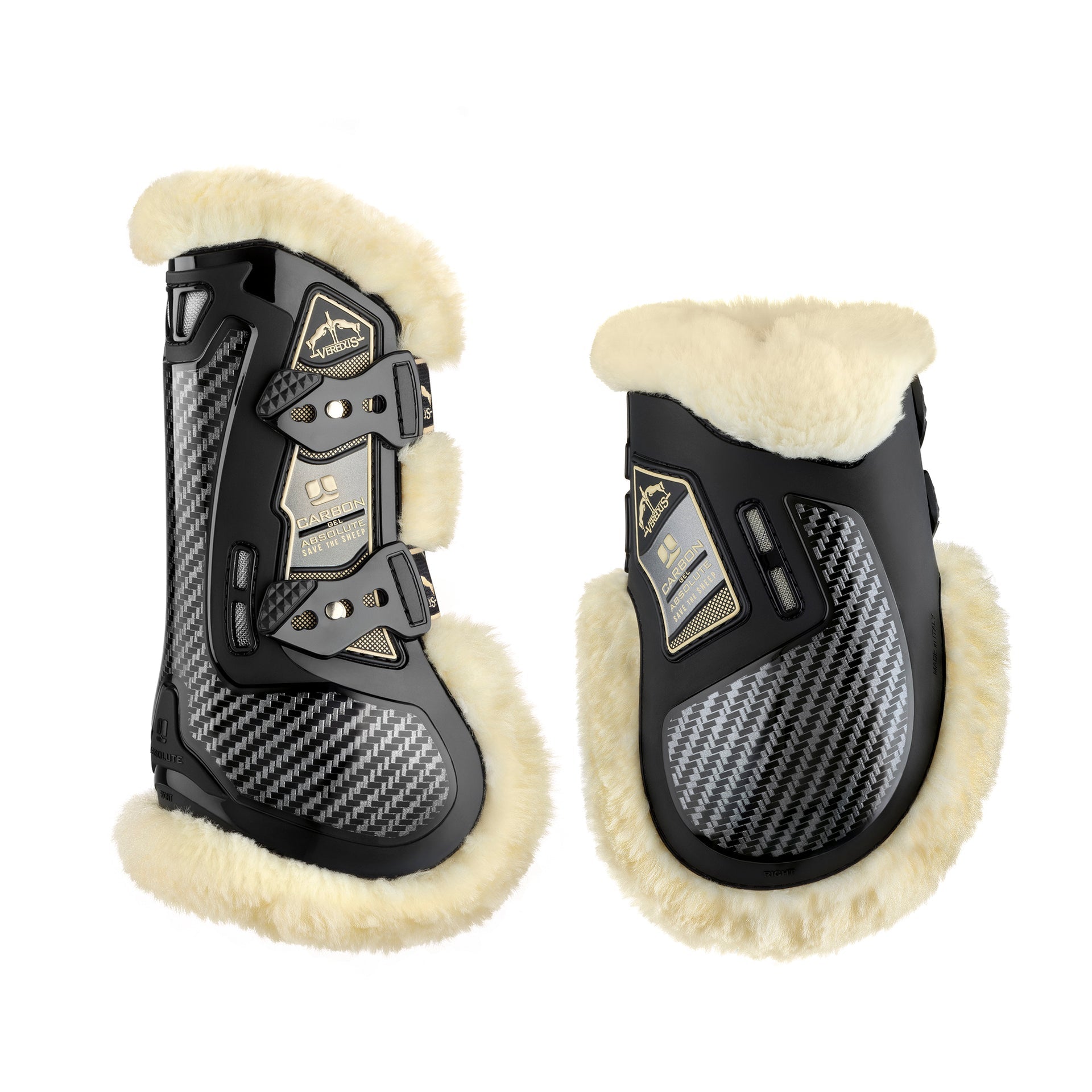 Front tendon boot with absolute protection in carbon and gel, and Techno Sheepskin lining.